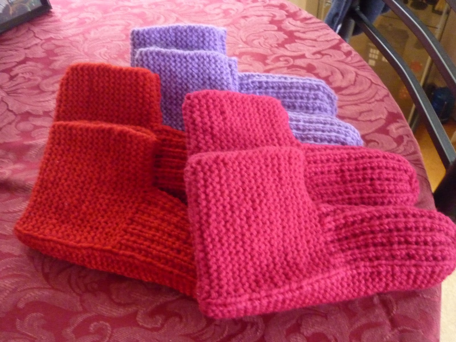 Mum asked me for some more knitted socks for Christmas so I have made her 4 pairs.(hot pink, blue, red and purple)
